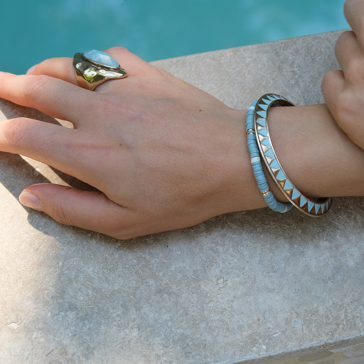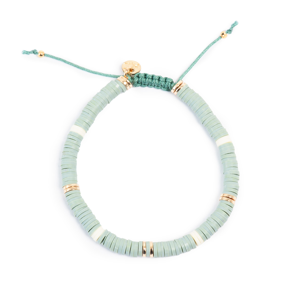 Coloured heishi beads in delightful combinations. Perfect to match with other pieces in our collection for a laidback, layered look. The bracelets can also be used as anklets. Metal parts are plated with real gold.