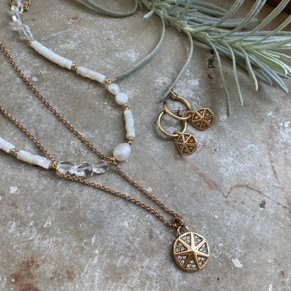 A unique and stunning statement collection decorated with sparkling crystal stones. We are in love! The collection has a whole range of earring and necklaces for any occasion. Notice the statement earrings, perfect for parties – match with the cuff bracelet. For a more casual look choose layered necklaces combined with hoop earrings. Plated with real gold and real silver.