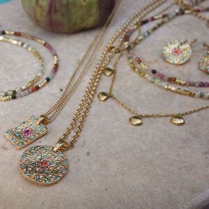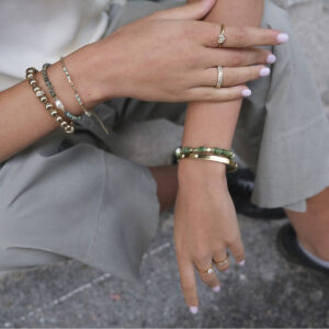 Just the most beautiful bracelets with stone beads and semi-precious stones like tiger-eye, green aventurine, amazonite, agate, rose quartz, jasper and blue sandstone. A colour pallet inspired by wild nature – real statement pieces! Perfect to match with metallic bracelets and bracelets from Nature Beads Collection. The details are plated with real gold and silver.